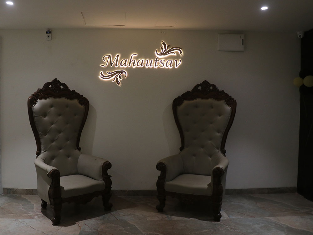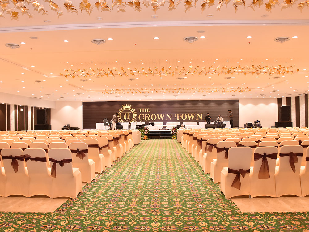 Mahautsav is the largest venue at Crown Town, featuring 13,485 sq. ft. of event space and a 4,900 sq. ft. pre-lobby. Ideal for grand events such as wedding receptions, Sangeet, DJ nights, corporate shows, and large gatherings.